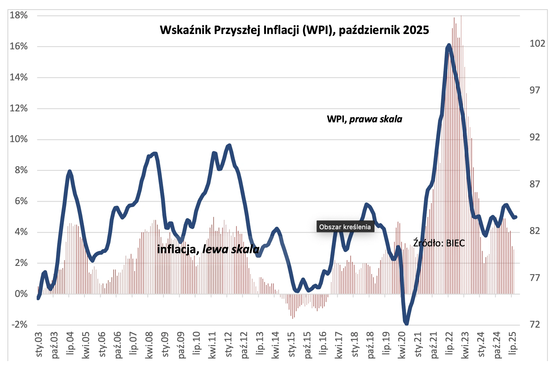 Utrzymanie cen w ryzach potwierdza również najnowszy Wskaźnik Przyszłej Inflacji (WPI) opracowany przez BIEC, który w październiku, podobnie jak miesiąc wcześniej, pozostał na poziomie -83,5 punktu, sygnalizując stabilizację presji cenowej.