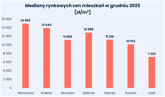 Różnice między dużymi rynkami pozostają wyraźne. Na jednym biegunie jest Warszawa, gdzie mediana cen mieszkań jest bliska 15 tys. zł za metr kwadratowy, a na drugim Łódź, z poziomami w okolicach 7 tys. zł. Trójmiasto i Kraków lokują się pomiędzy tymi skrajnościami – mówi Anton Bubiel, ekspert rynku mieszkaniowego SonarHome.pl.