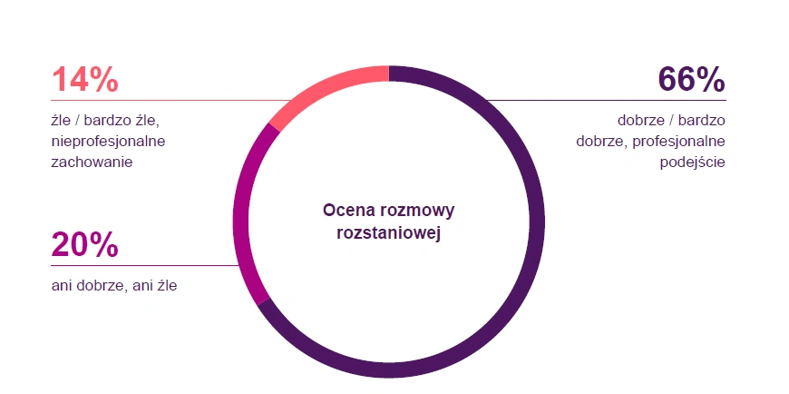 Rzeczywiście, aż dwie trzecie badanych w 2025 r. osób uznało swoją rozmowę rozstaniową za przeprowadzoną przez firmę profesjonalnie. Było ich prawie pięciokrotnie więcej niż oceniających ją krytycznie.