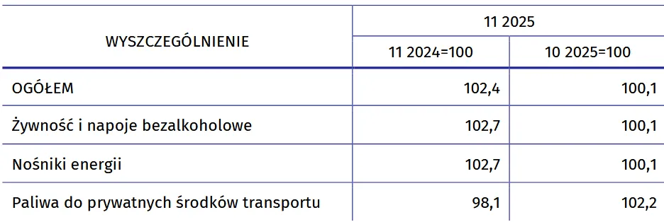 Ceny towarów i usług konsumpcyjnych według szybkiego szacunku w listopadzie 2025 r. wzrosły o 2,4 proc. w porównaniu z analogicznym miesiącem ub. roku – czytamy w komunikacie.