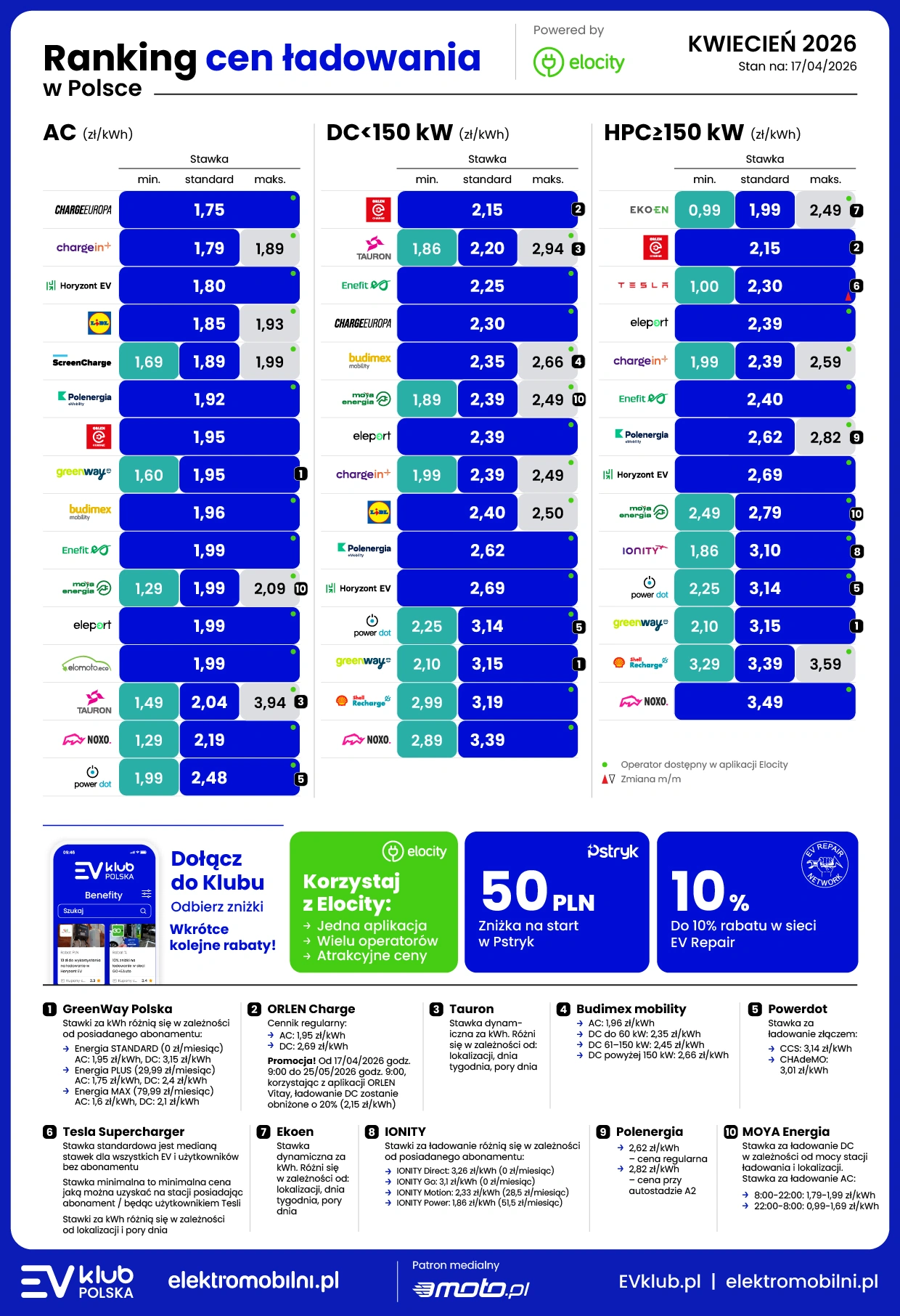 Comiesięczna analiza przeprowadzana przez EV Klub Polska i elektromobilni.pl pokazuje, że polski rynek ładowania samochodów elektrycznych wciąż pozostaje jednym z najbardziej zróżnicowanych cenowo w Europie.