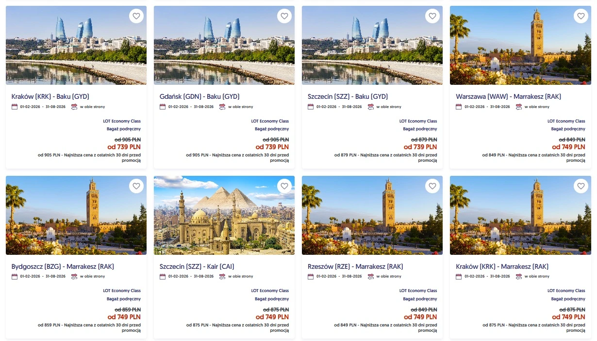 W ofercie na Bliski Wschód, Azję i Afrykę najtańsze są bilety do Baku - już od 739 zł w obie strony oraz do Marrakeszu i Kairu - od 749 zł.