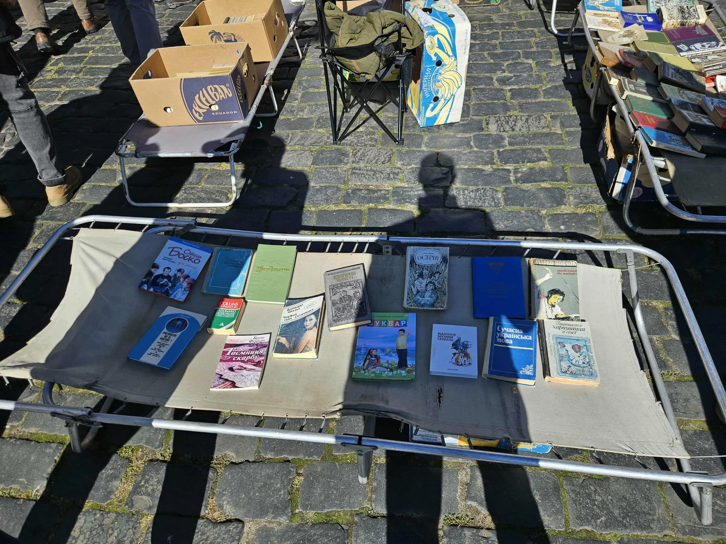 Odwiedzamy razem targ staroci, gdzie mieszkańcy sprzedają książki na rozłożonych łóżkach polowych.