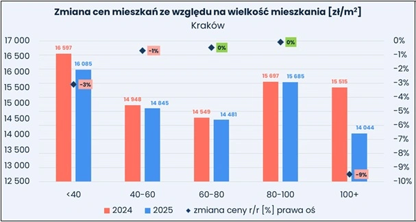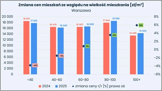 Według niego wszystkie te zjawiska pokazują, że chociaż poziom cen w 2025 roku był stosunkowo stabilny, rynek mieszkaniowy stopniowo zmienia swoją strukturę. Dominacja mieszkań średniej wielkości utrzymuje się, jednak jednocześnie rośnie udział dużych lokali oraz apartamentów.