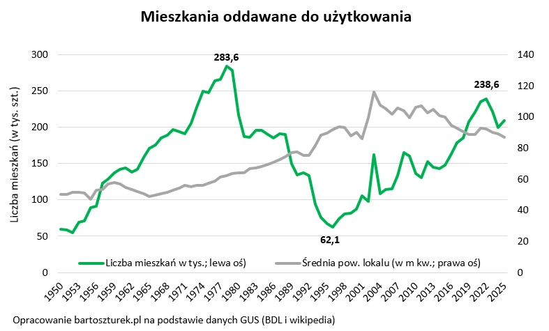 Suche statystyki nabierają sensu dopiero w historycznym kontekście. W komentarzu Turka przypomniano, jak wyglądały realne warunki mieszkaniowe jeszcze kilkadziesiąt lat temu.