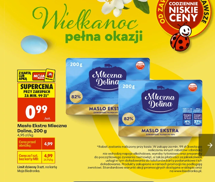 Walka na ceny masła trwa od wielu tygodni, ale teraz mamy prawdziwą kulminację tej rywalizacji. Biedronka właśnie wprowadziła masło w cenie 0,99 zł, co musiało wywołać reakcję jej głównego adwersarza. Lidl odpowiedział ofertą wprawdzie na poziomie 1,89 zł za opakowanie, ale przy zakupie większej liczby sztuk.
