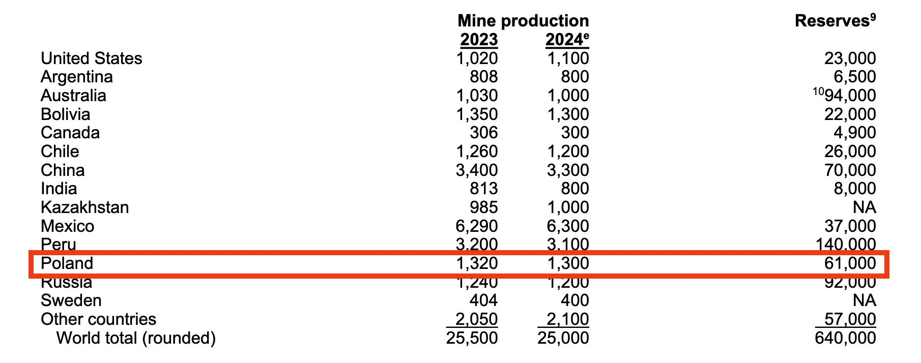 Srebro jest wyjątkowo bliskie naszej gospodarce. Dane U.S. Geological Survey wskazują, że Polska srebrem stoi. Amerykanie oceniają zasobność naszych złóż na 61 tys. ton.