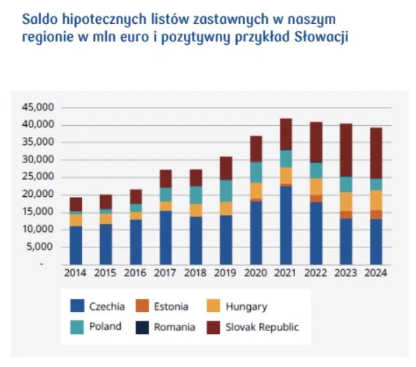 Ale nie wszystko możemy zrzucić na komunizm. PKO Bank Hipoteczny przeanalizował bowiem wielkość emisji listów zastawnych w innych krajach właśnie naszego regionu, z podobną historią i okazuje się, że również na ich tle Polska wypada bardzo blado. Mniejsze kraje niż my w ostatnich latach miały znacznie większe emisje - zarówno Węgry, Czechy i Słowacja.