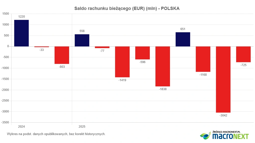 W ujęciu rocznym ujemne saldo obrotów bieżących pozostaje stabilne i wynosi 0,9 proc. PKB. To poziom, który ekonomiści określają jako bezpieczny, choć prognozy na kolejne kwartały wskazują na możliwe stopniowe pogłębianie deficytu.