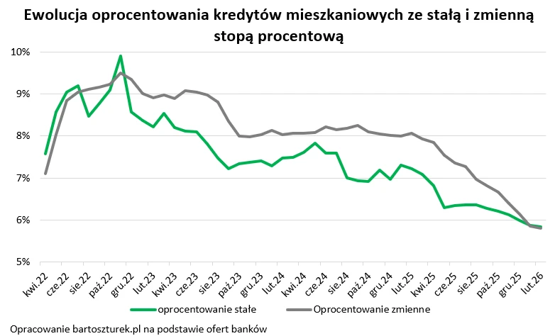 Rada Polityki Pieniężnej w 2025 roku sprowadziła stopę referencyjną z poziomu od 5,75 proc. do 4 proc. Niższy koszt pieniądza szybko przekuty został przez banki na tańsze kredyty mieszkaniowe. Co więcej, dominujące jest oczekiwanie na dalsze cięcia stóp o kolejnych 75 punktów bazowych. To sprowadziłoby stopę referencyjną do docelowego poziomu 3,25 proc. - mówi Bartosz Turek, analityk rynku nieruchomości.