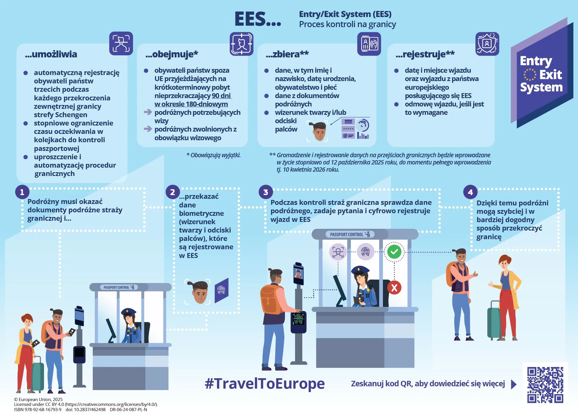 EES dotyczy wyłącznie osób spoza Unii Europejskiej i Islandii, Norwegii, Liechtensteinu i Szwajcarii, które podróżują na maksymalnie 90 dni w ciągu pół roku. Dla obywateli tych państw oznacza to obowiązek rejestracji w systemie przy każdym wjeździe i wyjeździe. Polacy i inni mieszkańcy UE nie odczują więc bezpośrednio zmian, jeśli podróżują tylko wewnątrz wspólnoty.