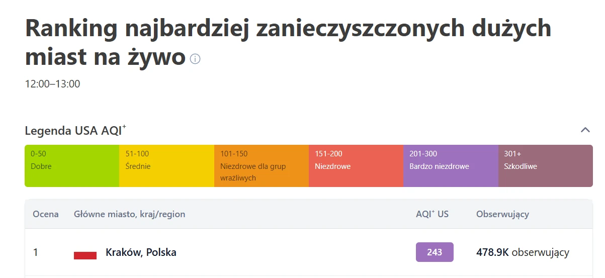 Kraków z najbrudniejszym powietrzem na świecie. Co za wstyd