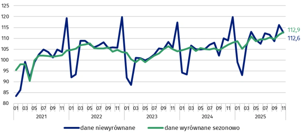 W listopadzie 2025 r. niższy niż w poprzednich dwóch miesiącach wzrost sprzedaży detalicznej r/r (w cenach stałych) spowodowany był m.in. mniejszą liczbą dni handlowych w porównaniu z listopadem 2024 r. – podkreśla GUS w komunikacie.