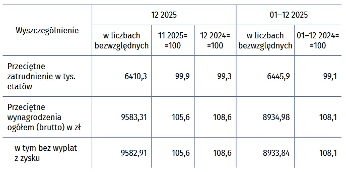 Jednocześnie po stronie zatrudnienia obraz pozostaje słabszy. Przeciętne zatrudnienie w sektorze przedsiębiorstw było o 0,7 proc. niższe niż rok wcześniej i o 0,1 proc. niższe niż w listopadzie, co oznacza kontynuację trendu lekkiego spadku liczby etatów.