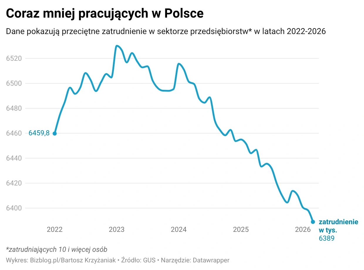 Wynagrodzenia w sektorze przedsiębiorstw osiągnęły najwyższy poziom w historii, a jednocześnie liczba etatów spadła mocniej, niż zakładał rynek, plasując się ostatecznie na najniższym poziomie od początku 2022 r. Najnowsze dane GUS pokazują, że mamy rekordowo wysokie płace, ale coraz słabszy popyt na pracowników.