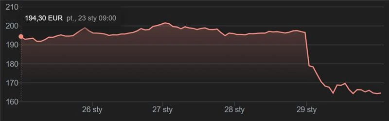 Zamknęły się one na najniższym poziomie od połowy 2024 roku - 164 euro.