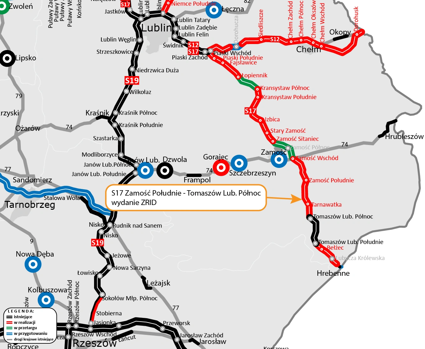 Wojewoda Lubelski wydał zezwolenie na realizację inwestycji drogowej (ZRID) dla nowego odcinka drogi ekspresowej S17 w woj. lubelskim. Chodzi o trasę o długości 18,5 km między węzłami Zamość Południe i Tomaszów Lubelski Północ. To ważna wiadomość dla kierowców, którzy czekają na nową ekspresówkę w tym regionie.