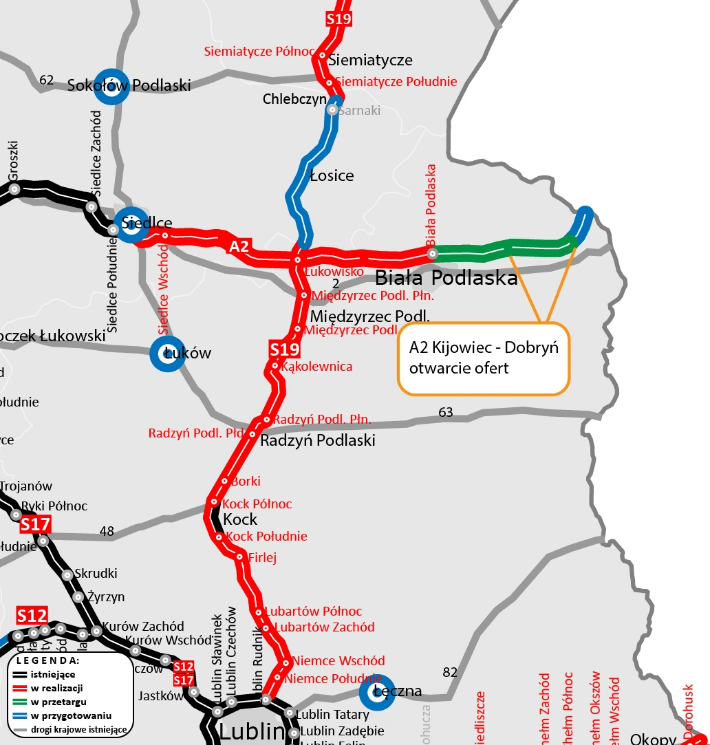 Wojewoda Lubelski wydał decyzję o zezwoleniu na budowę autostrady A2 na wschód od węzła Biała Podlaska. Jest to kolejny fragment autostrady biegnącej w kierunku przejścia granicznego z Białorusią w Kukurykach. Po uzyskaniu zgody GDDKiA może dokończyć trwający od maja przetarg.